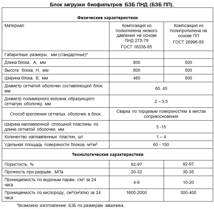 Изготавливаемые нами блоки биозагрузки БЗБ состоят из сетчато-трубчатых элементов, сваренных между собой по торцевым поверхностям. Блоки изготовлены из полимерных композиций на основе ПНД 273-79 (ГОСТ 16338-85) и ПП (ГОСТ 26996-85), включающих в себя ингибиторы и антиоксиданты, препятствующие старению под действием ультрафиолетового излучения.